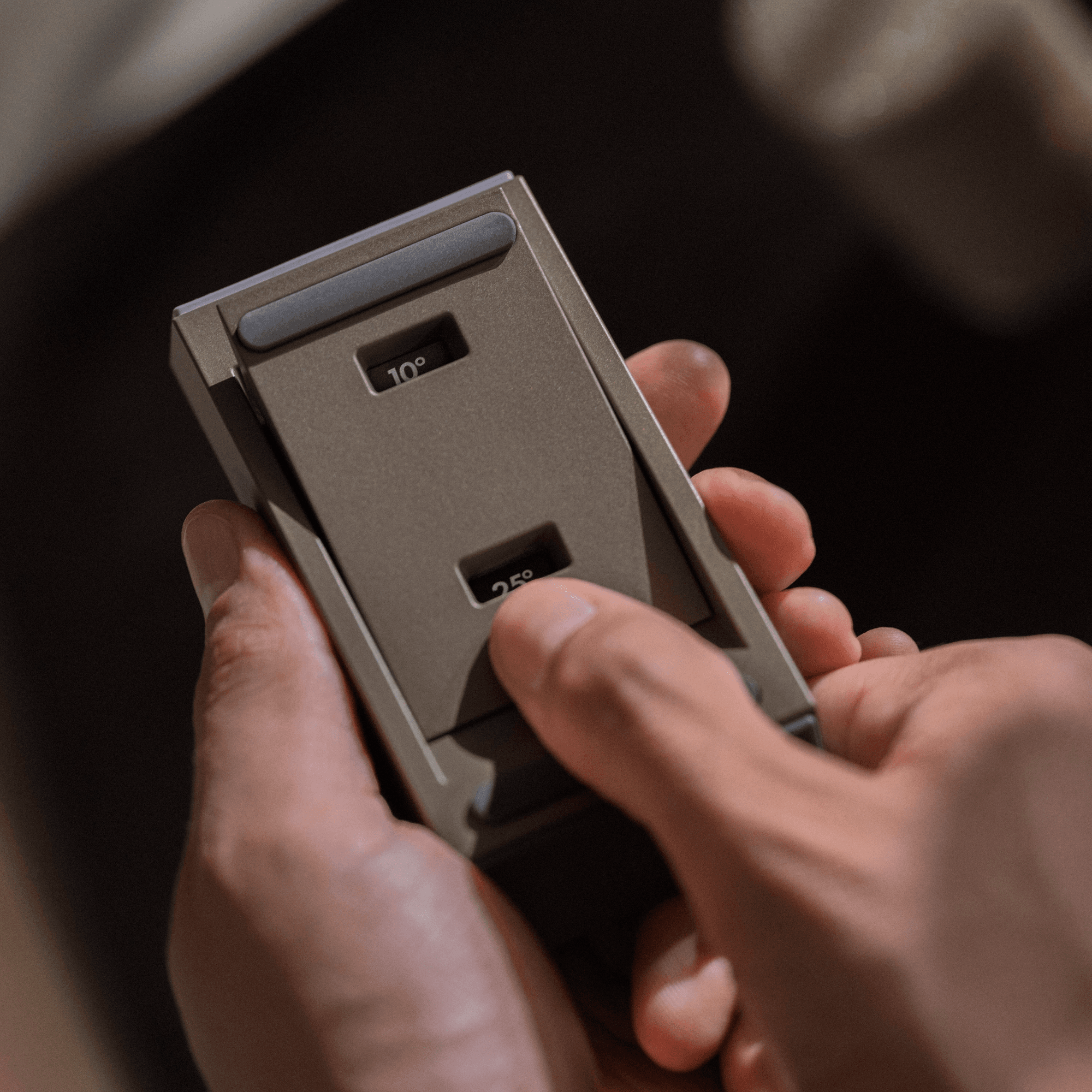 What makes the HORL®3 Pro Angle Support unique is hidden from view. By pressing the grooved surface on the underside of the angle support, you can select three positions and this provides six different angles.